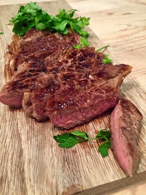 "Seared Chuck Eye Steak, an inexpensive cut with incredible flavour, and has the potential to be one of the most succulent with a few tips: Take out of the packaging, salt, and rest for 20 minutes. Sear both sides for 1 min in a very hot pan, turn the heat down a little, baste with the juices and butter, for a further 2 minutes. Rest it for 5 minutes, if you can resist, cut across the grain - I couldn't stop sampling it"